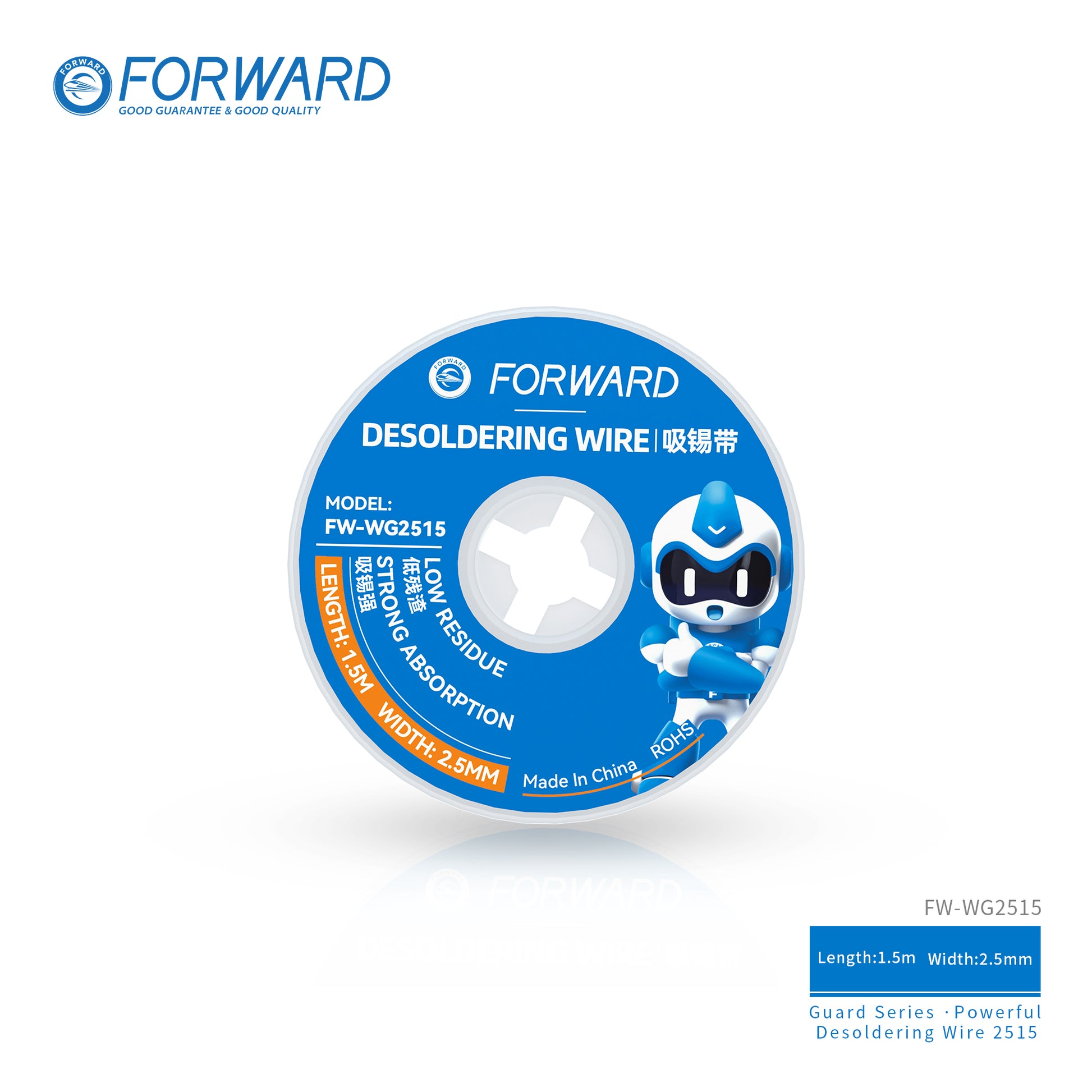 ¿Necesitas limpiar áreas grandes de soldadura sin sobrecalentar la placa? La Malla Desoldadora Forward Guard Series de 2.5mm es la solución profesional para retirar excesos de estaño en tiempo récord. Gracias a su ancho superior y su trenzado de cobre de alta densidad, esta malla actúa con una succión masiva, siendo la favorita para limpiar pads de integrados grandes, puertos de carga reforzados y terminales de potencia.