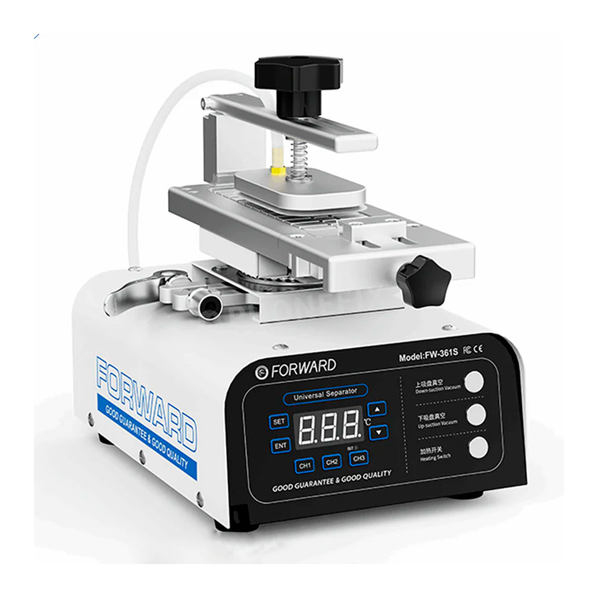 El Forward FW-361S es la solución ideal para técnicos que buscan eficiencia sin ocupar demasiado espacio. Este equipo "Mini" integra tres funciones críticas en una sola herramienta, facilitando la apertura y desensamble de smartphones de forma segura y profesional.